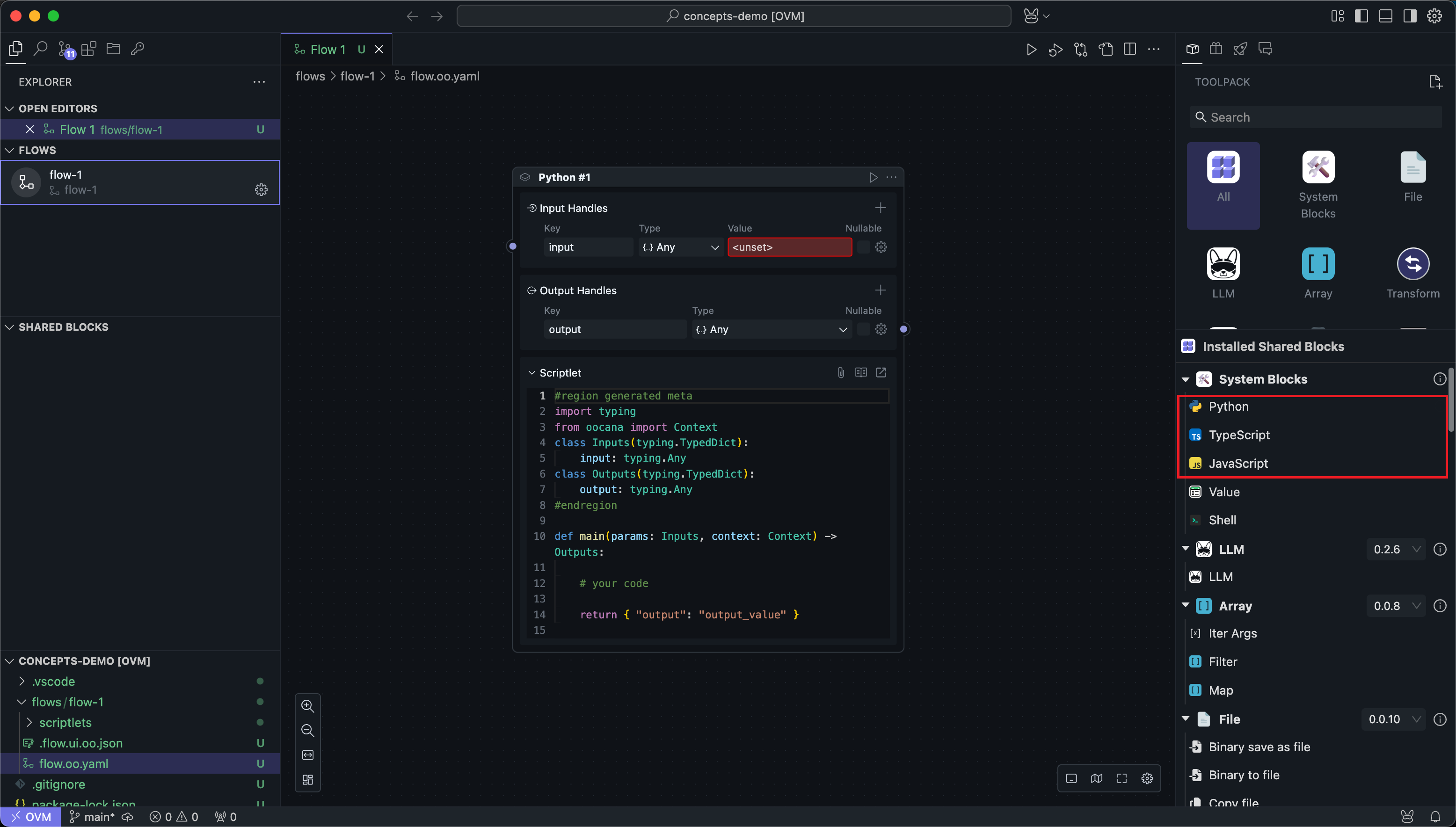 Block is the most basic unit of execution. It is essentially a piece of code that OOMOL Studio encapsulates in the form of Blocks, making it convenient for users to organize and reuse arbitrarily.