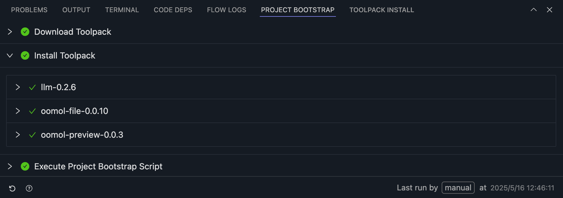 When you import a new project, OOMOL Studio will automatically initialize the project, including: