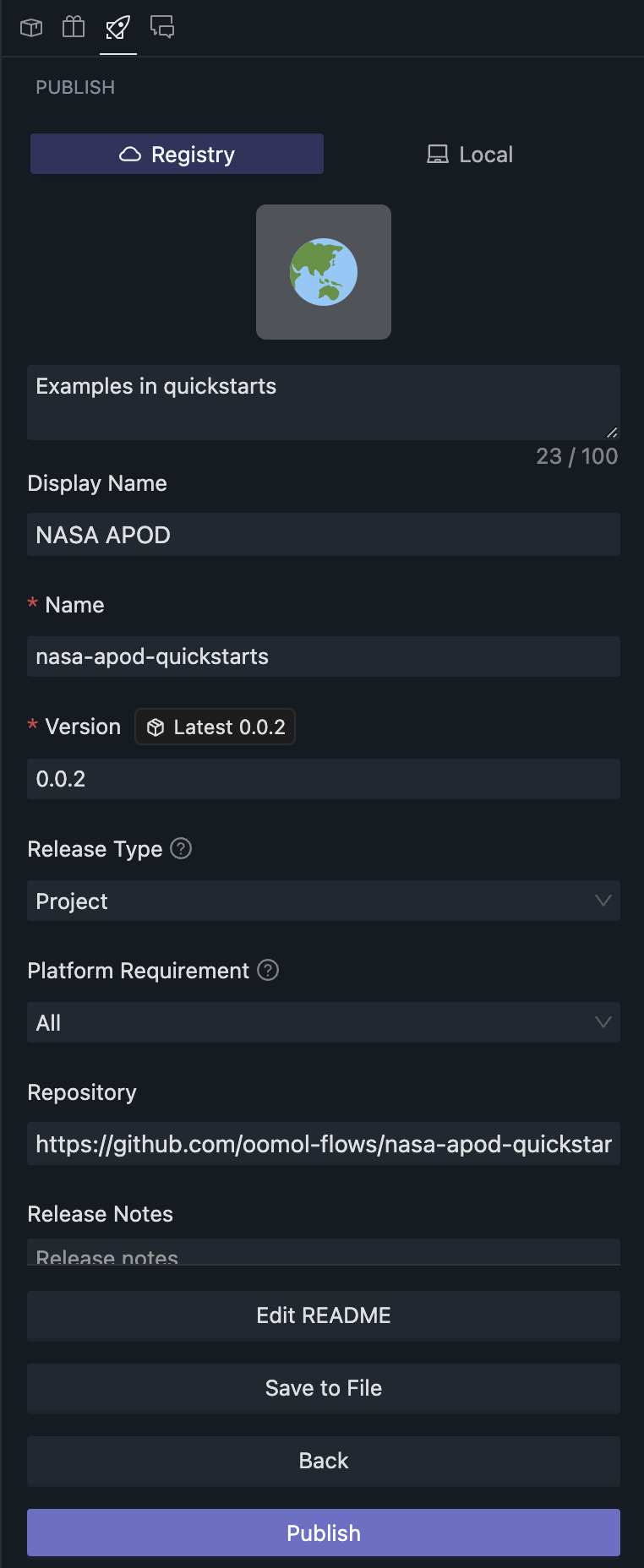 When preparing to publish to the OOMOL Store, you will see many fields to fill out, such as: