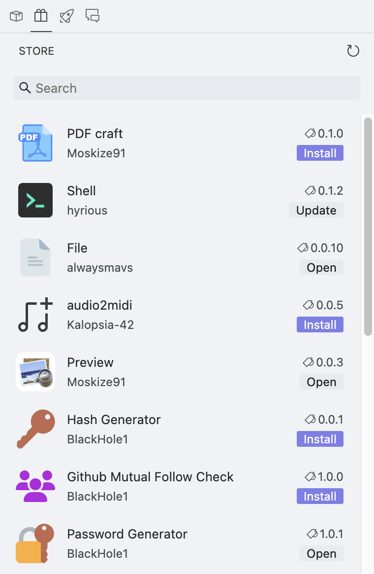Here, you can browse all toolpack in the OOMOL Store and install them. If there are some installed packages that are not the latest version, you can also upgrade them in one click.